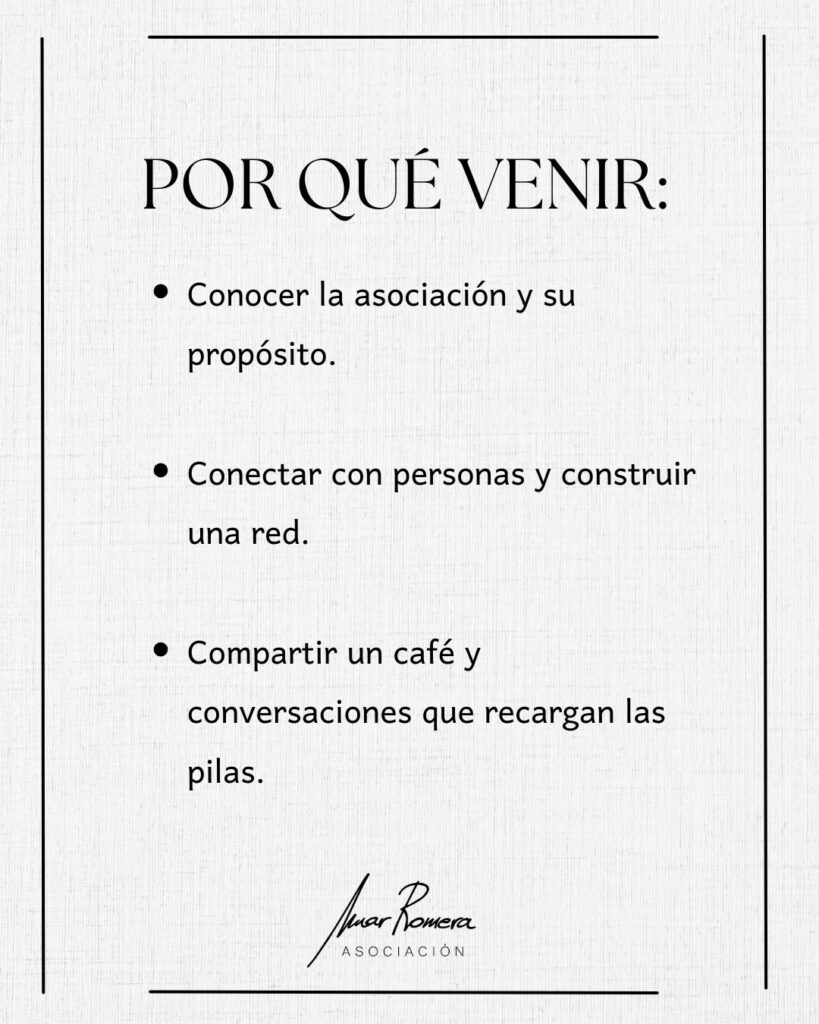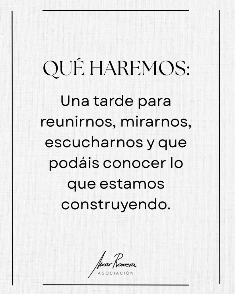 Presentamos públicamente la Asociación Mar Romera en su primer evento presencial, un espacio para reunirnos, escucharnos y dar forma conjunta a este proyecto que mira al futuro.